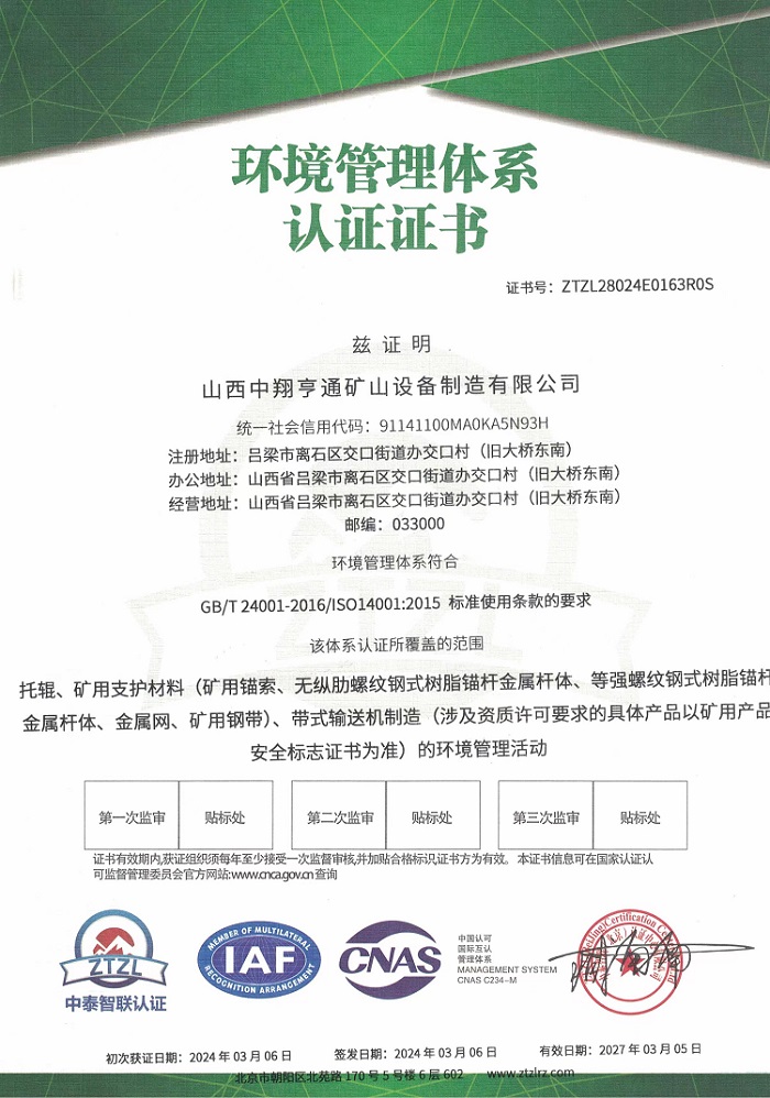环境管理体系认证证书