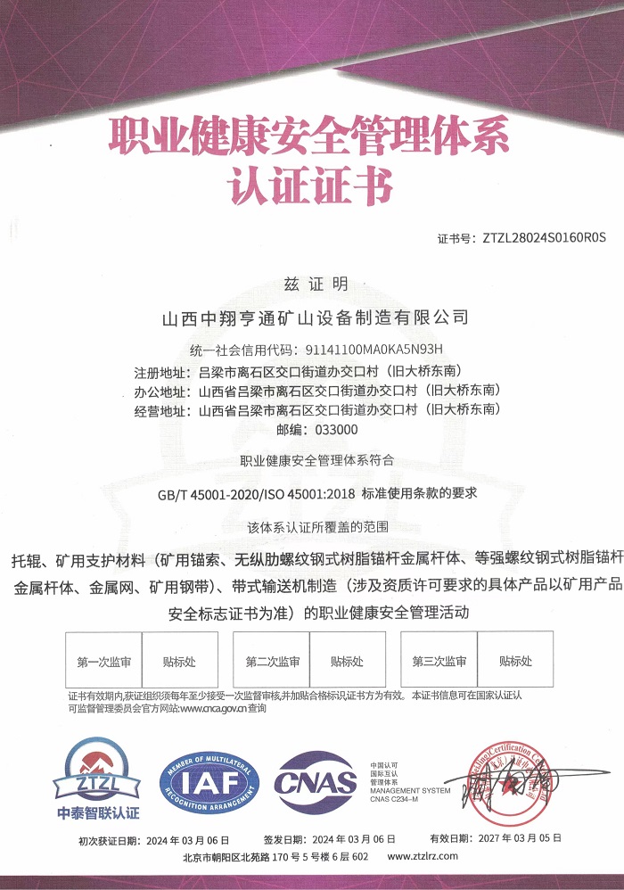 职业健康安 全管理体系认证证书
